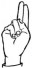 На ћирилици написано БОРИСАВА РАДМАНОВАЦ састоји се из 18 слова [?]. Исписано ћириличном једноручном азбуком за глувонеме: